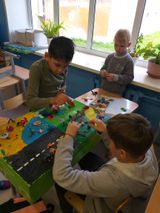 Лепка из пластилина маленьких человечков, домиков, рек, морей, пляжных зонтиков и лесов настолько увлекла ребят, что они готовы строить эту необычную страну каждый день. Вот и сегодня продолжались появляться новые объекты в пластилиновой стране.