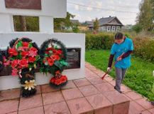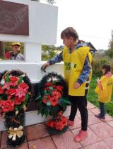 Вместе с воспитателями Н.К. Горшковой, Н.В.Тиняковой и К.Д. Синявиной вымыли Стеллу, подмели опавшие листья, убрали мусор. Почтили память павших минутой молчания.