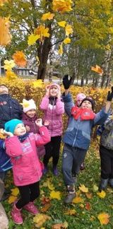 В этот же день с М.М. Балаевой и И.А. Гейбель воспитанники наслаждались яркими красками осенней природы. Собирали букеты из разноцветных кленовых листьев, с радостью подкидывали их в небо, бегали по золотому ковру… В итоге получили неописуемое наслаждение от прогулки.