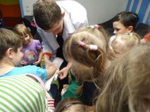 Ребят познакомили с видами травм и способами первой помощи при их возникновении. Старший воспитанник Абрамов Алексей выступил в роли «доктора», наглядно продемонстрировал способы наложения шин при растяжениях и переломах, показал методику наложения жгута при кровотечениях. Затем посмотрели видеофильм, рассказывающий о способах первой помощи при бытовых ожогах, кровотечениях и переломах.