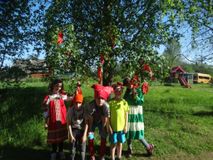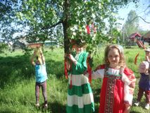 О традициях, истории и обрядах праздника рассказали ребятам воспитатели Центра. Затем девочки, надев сарафаны и яркие наряды, а мальчики красивые русские рубахи украшали лентами берёзоньку во дворе Центра, загадывая при этом свои самые заветные желания.