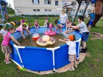 Вот и юные жители славного Доброгада каждый день начинают с весёлой зарядки под музыку. Большую часть времени стараются проводить на прогулке. Катаются на велосипедах и роликах, соревнуются в различных эстафетах, прыгают на батуте. Малыши резвятся на качелях и в маленьком надувном бассейне, а подростки чинно сидят под навесом и беседуют. На прогулке ждёт ребят и ежедневная, всеми детьми любимая, закаливающая процедура обливания.