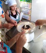 Для большинства детей, одно из самых любимых мест в развлекательных центрах является кафе. Не стал исключением и наш Дельфинарий. Но так как город у нас особенный, а ребята находятся в необычном Дельфинарии, то и кафе у нас тоже сказочное. Угощение здесь делают сами юные повара. Сегодня в меню была сладкая вата. Благодаря нашему давнему другу Николаю Николаевичу в Доброграде появился бытовой аппарат для приготовления сладкой ваты, при помощи которого воспитанники имеют возможность самим приготовить лакомство. Несколько движений волшебной палочкой и… Чудо! Воздушная, словно облако, сладкая вата уже на палочке у ребенка. Дети, чувствовали себя настоящими магами, подростки и малыши не скрывали своего восторга.